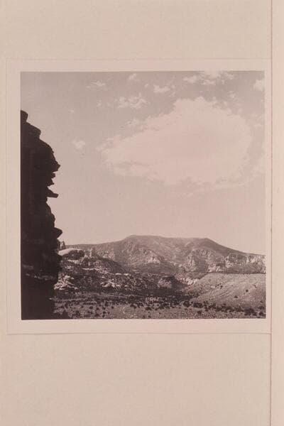 Across Trail Canyon to Navajo Mountain. Ruin at left