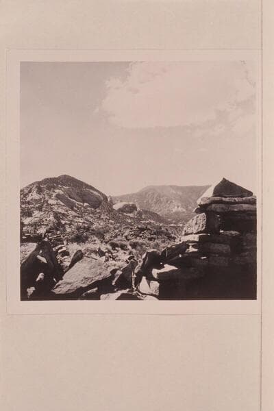 The Armsby party near head of Piute Canyon with Navajo Mountain at left and Little Navajo at right