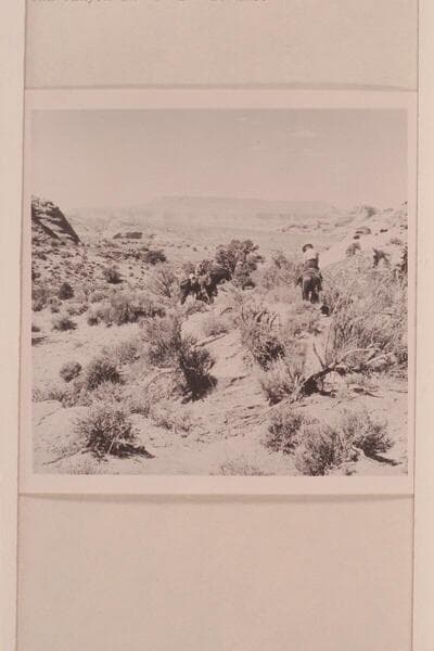Mary Abbott on the trail to Rainbow Bridge. Fifty Mile Mountain in distance, Cha Butte at right and Cha Canyon in middle distance