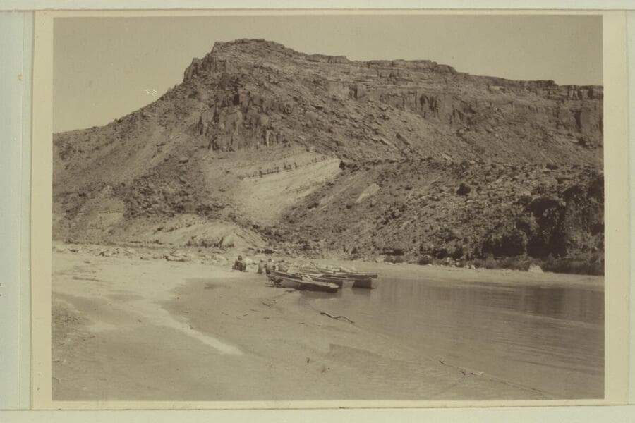 RB-MV party at foot of 13-Foot Rapid, which they lined. Folding plywood boats