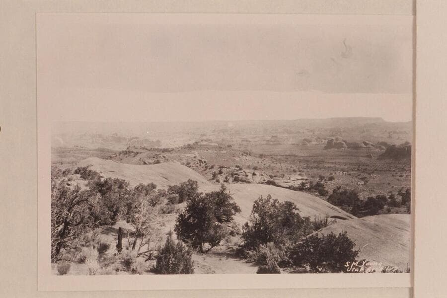 Looking north from #126; country north of Javajo Mountain. Taken on trip to discovery of Bridge. The view appears to be up into the San Juan from a point near Cha Butte