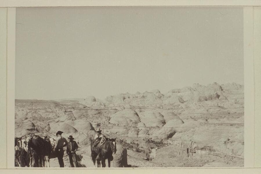 Up Nasja Creek to the junction with Bald Rock Creek. Navajo Mountains on skyline