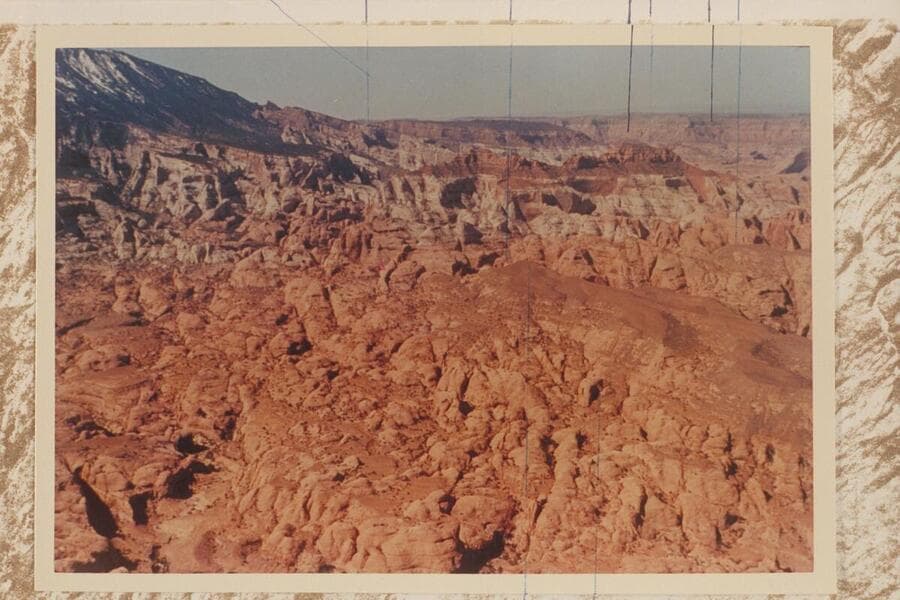 Southwest from Bald Rock Creek to 6069 which is the red butte in upper right center. Navajo Mountain is upper left. Cummings Mesa is upper right