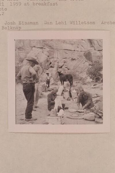 Camp in Bald Rock; Junction; Cha Creek. Breakfast. Noel Morss; Josh Eisaman; Dan Lehi Willetson; Archeyes Masland; Bill Belknap