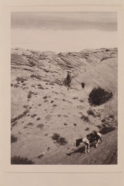Dan Lehi riding down from the divide between Bald Rock and Nasja Creeks near the San Juan River