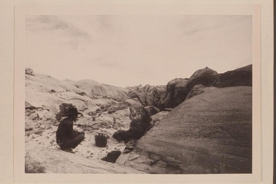 Repairs to Tom Daly's horse after he had slipped on the slickrock west of Nasja Creek