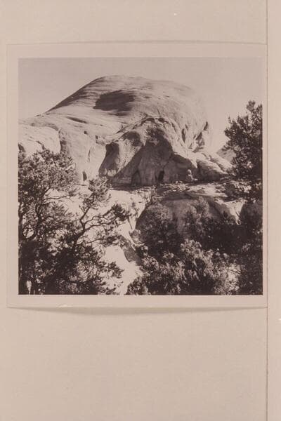 Large cave in upper Surprise Valley. A few small ruins in this cave. Names of M.A. Smith, O.B. Lundahl 7-16-08