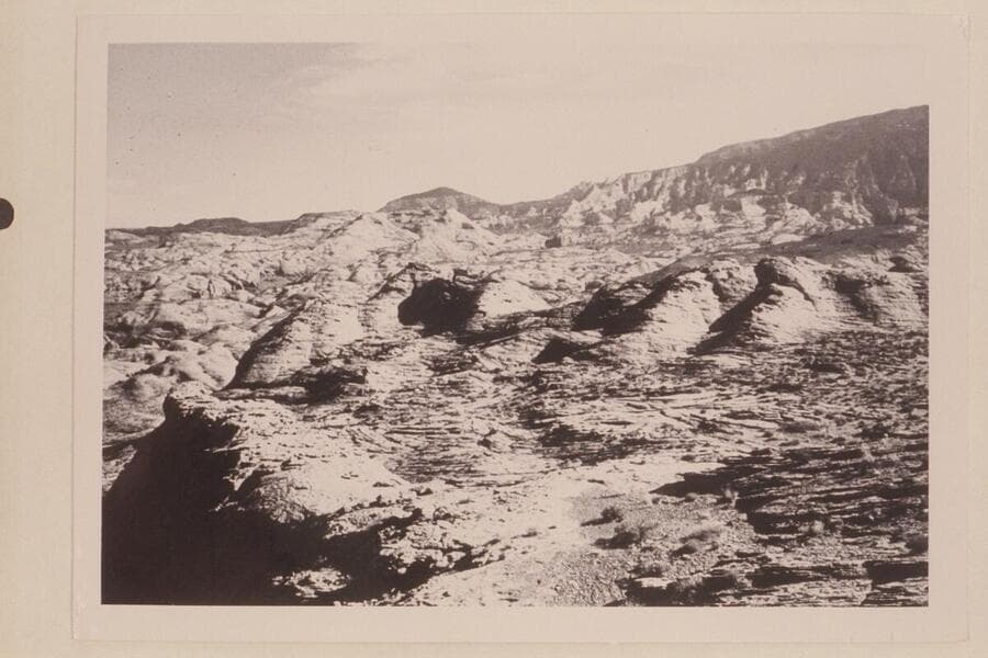 Formation at rim of plateau southwest of Nasja Creek, Navajo Mountain. The sloping mesa at center is 4903 between Bald Rock Creek and Nasja Creek
