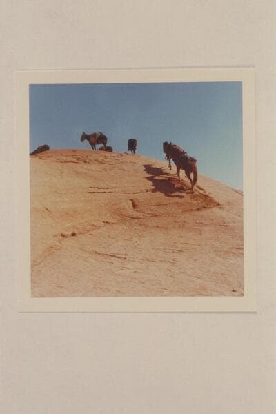 Stock on slick rock west of Nasja Creek and below Dead Center Camp