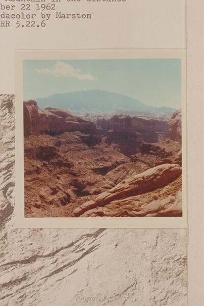 Formation at rim of plateau southwest of Nasja Creek, Navajo Mountain. The sloping mesa at center is 4903 between Bald Rock Creek and Nasja Creek