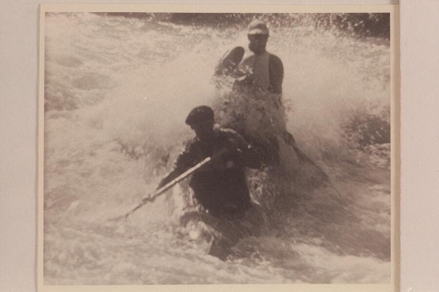 Larry Sanderson and Roy Klinger appear to be impressed by a rapid--probably Vulcan Rapid