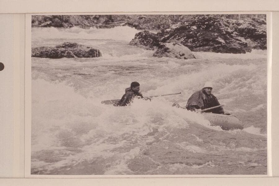 Tyee Rapids on the Rogue River. One of the rubber boats of the six UC students who traversed the river in 1954
