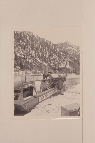 Loading Don Smith's aluminum sweep-scow near Shoup on the Salmon River in Idaho