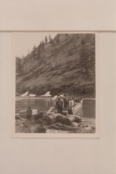 The scow beached, the sweeps unshipped, and the dunnage going shore