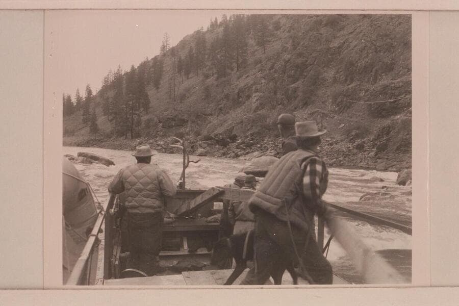 Tom Staley, Don Smith, Carl Kriley. Running a riffle of the Salmon River