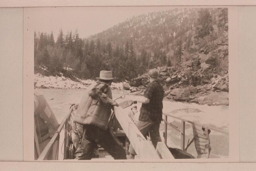 Loading Don Smith's aluminum sweep-scow near Shoup on the Salmon River in Idaho