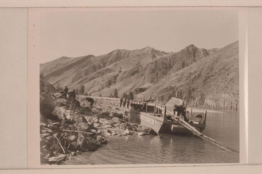 Loading Don Smith's aluminum sweep-scow near Shoup on the Salmon River in Idaho