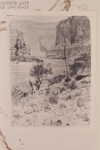Up Marble Canyon from Mile 49. Eddy caption: "Upstream 1 1/2 mile below Triple Alcoves"
