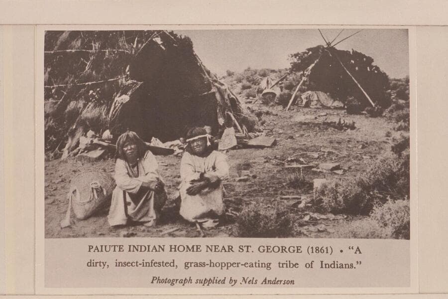 Compare these Indians with those pictured by Hillers for Powell. The Hillers photos show the Paiutes dressed in costumes prepared by Powell