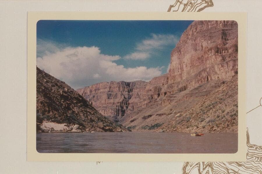 Upriver at mouth of Fall Canyon. Includes terrain appearing in Wilbur photos #9 and #15 of 1904