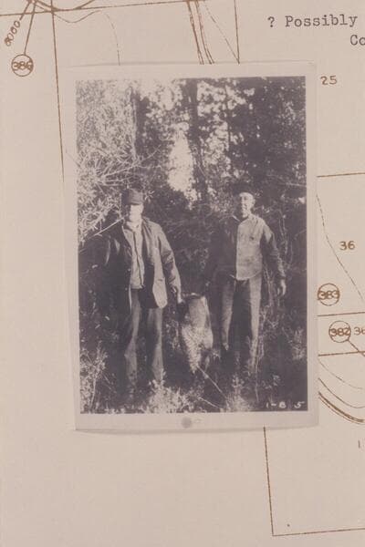 Sharp and Stone bringing what appears to be the fireless cooker into camp #1, about Mile 381.5 left bank below Bitter Creek