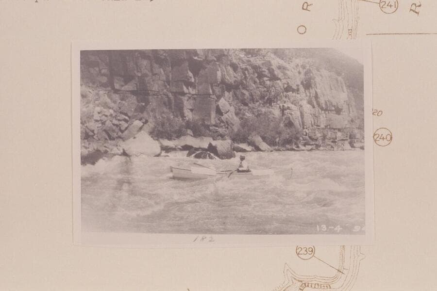 Lug Larsen in the "Galloway," passing the rock at lower end of Disaster Rapid