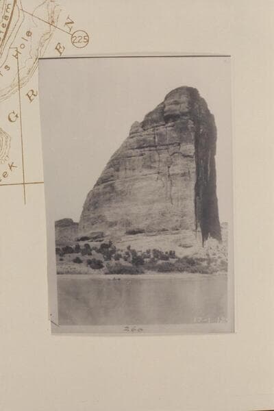 Echo or Steamboat Rock at Pats Hole. The lower end of the Canyon of Lodore is bototom left