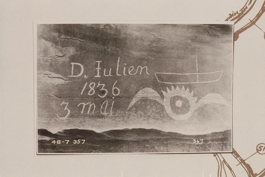 D. Julien inscription in Hell Roaring Canyon, tributary to Labyrinth Canyon of the Green RiVer at Mile 53.8 left bank after it had been chalked