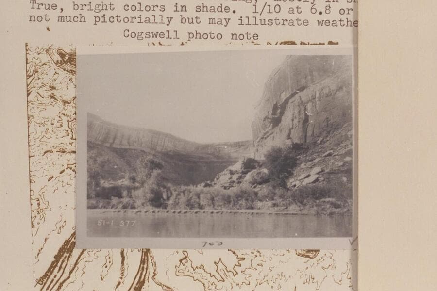 White spot of wall of Stillwater Canyon. Mile 22 1/2 left bank