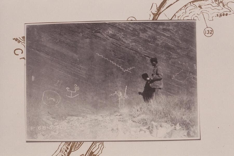 Dubendorff at inscriptions below mouth of Smith Fork, Glen Canyon, Mile 131.8
