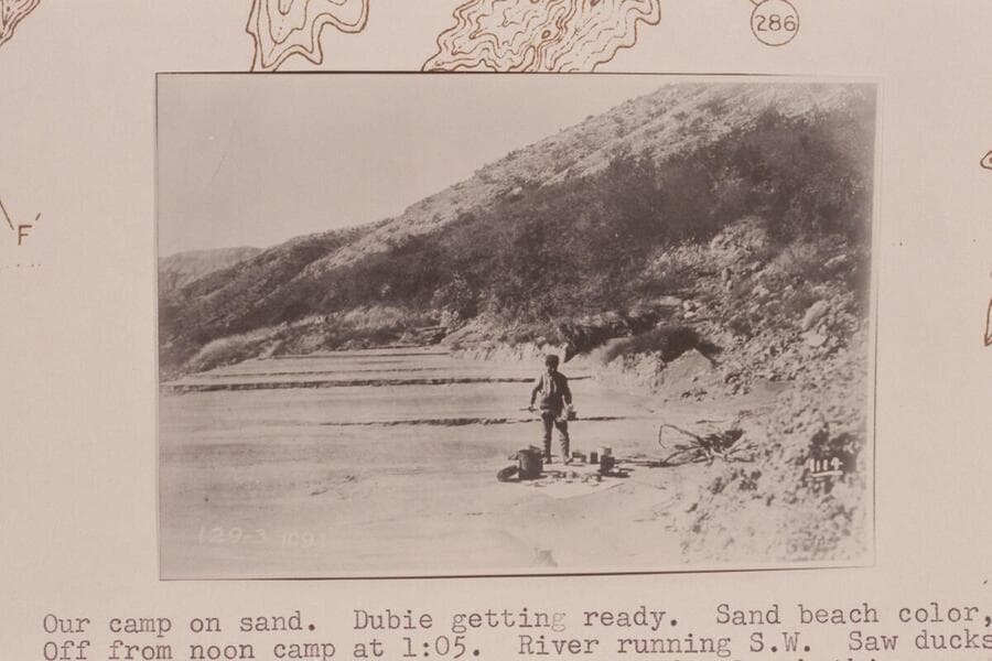 Dubendorff prepares lunch during stop between the mouth of Grand Wash and the head of Iceberg Canyon. About Mile 285-286