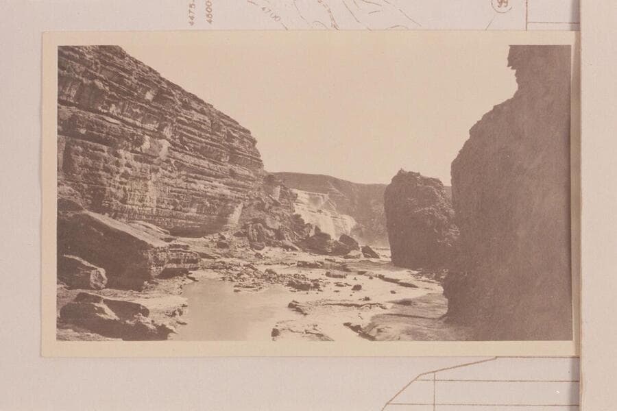 Cable crossing at gauging station from rim. Low water. Near Grand Falls of the Little Colorado
