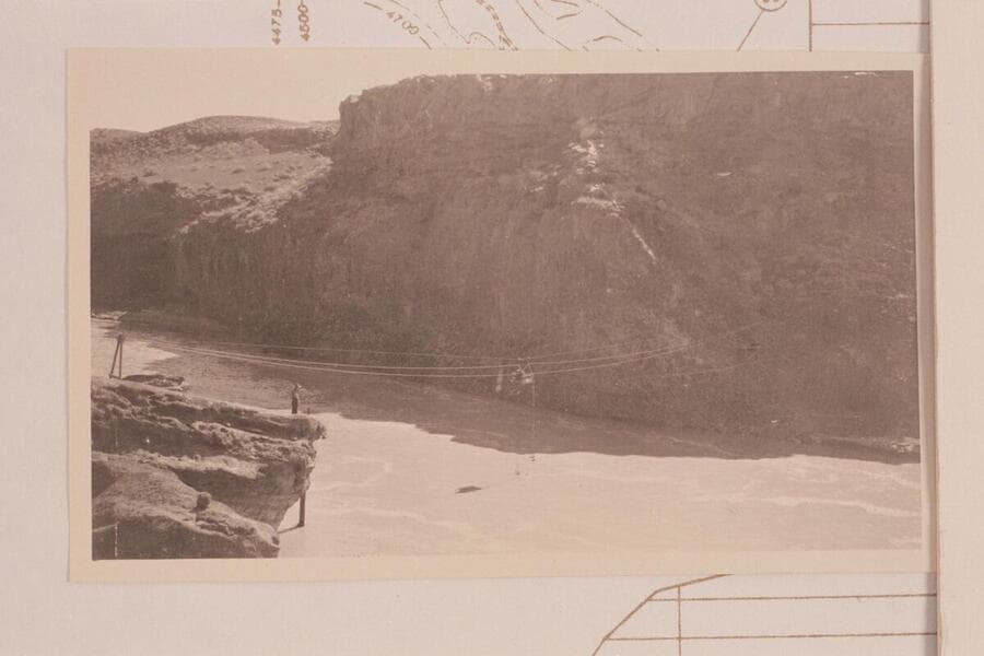 Cable crossing at gauging station from rim. Low water. Near Grand Falls of the Little Colorado