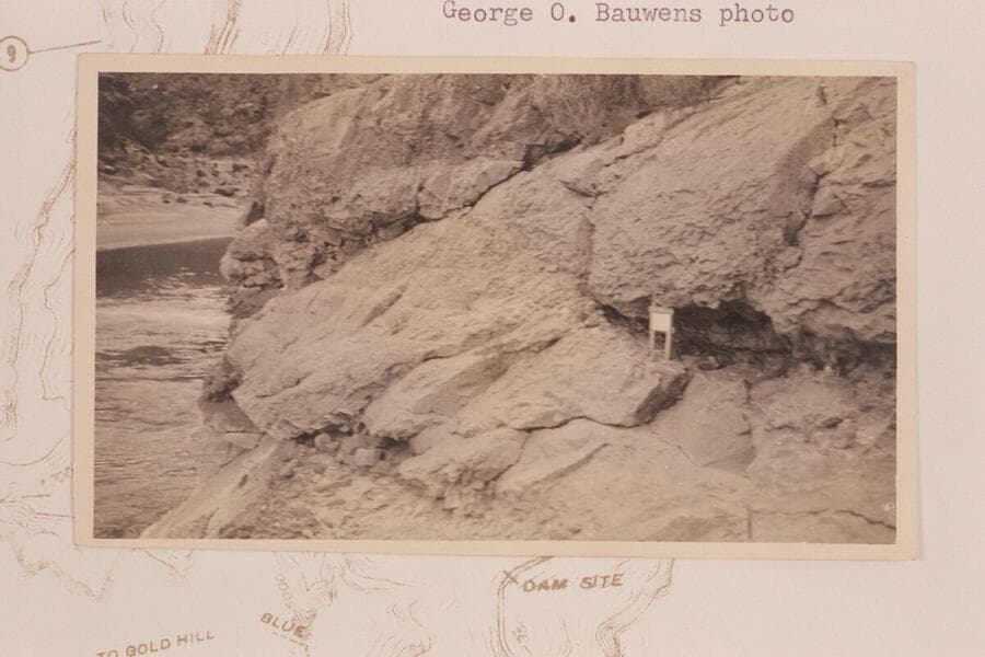 The Blue Spring of the Little Colorado River. Exploration trip. Stalactites above water. Bauwens used the name "Baum Spring."