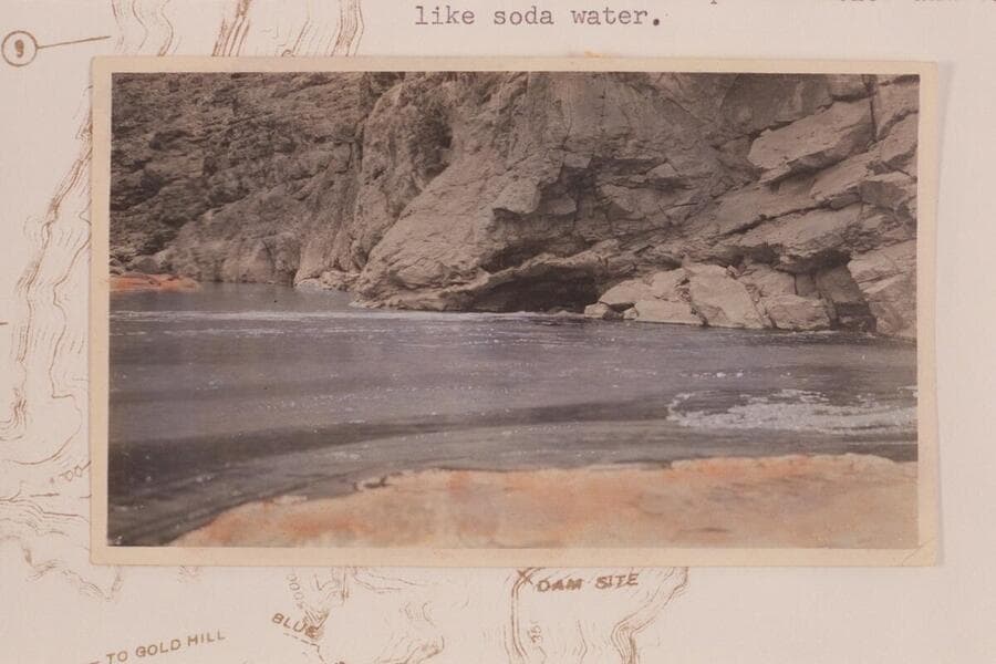 The Blue Spring of the Little Colorado River. Exploration trip. Stalactites above water. Bauwens used the name "Baum Spring."