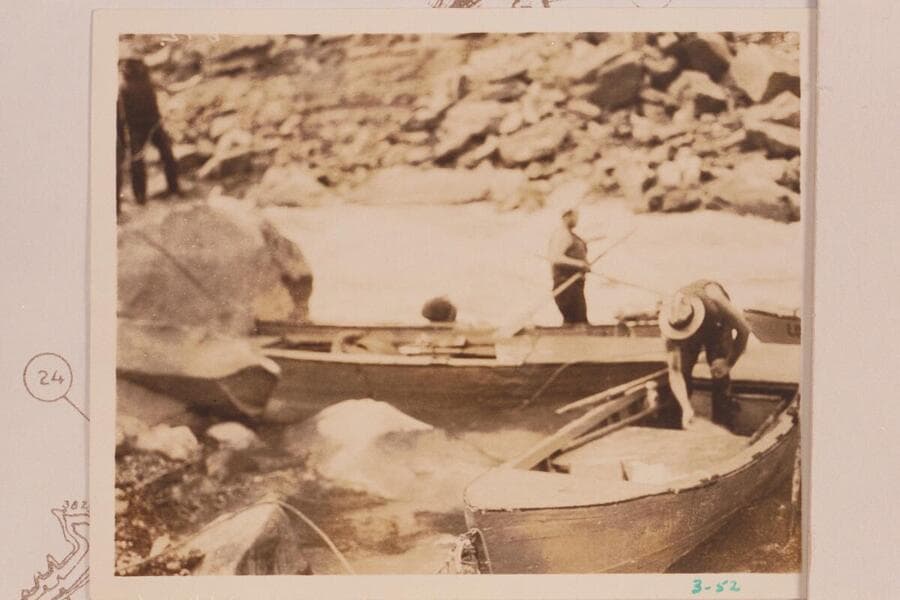 Skiff of the Dusty Dozen in the hole near the right bank of 85 Mile Rapid