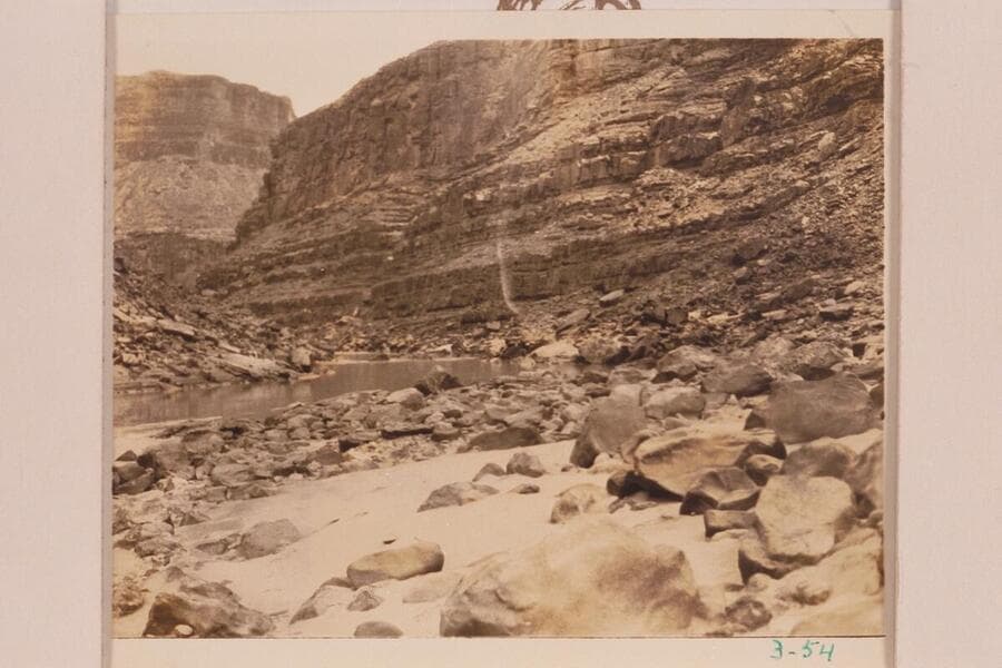 Rapid at mouth of 22 Mile Wash. A boatman is visible at center