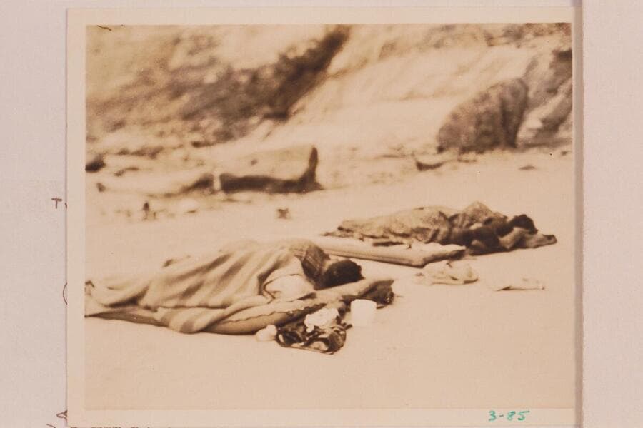 Camp on the beach above Vaseys Paradise. Margaret Marston on the "Sandra"