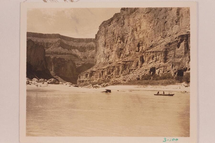 Up Marble Canyon from Mile 49. Eddy caption: "Upstream 1 1/2 mile below Triple Alcoves"