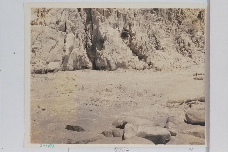 Bus Hatch and one of the skiffs below Monument Creek Rapid during noon stop of 1934, July 27. Bright Angel gauge: 2,070 cfs