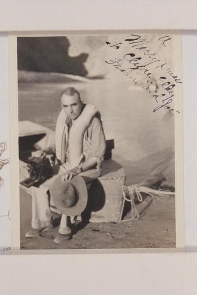 Clyde Eddy at the noon stop below Monument Creek Rapid [A Merry Xmas to Clyde Eddy from 'Old Joe']