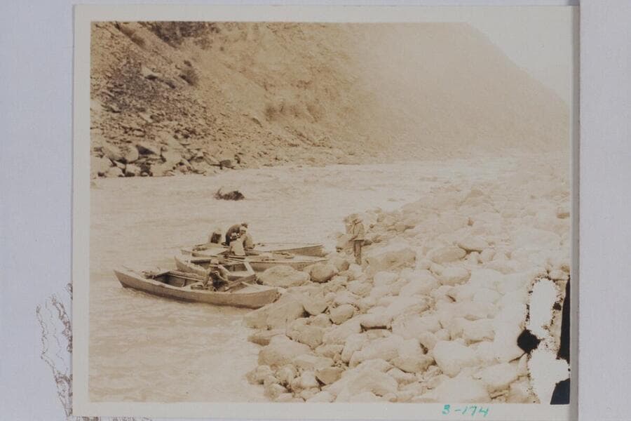 Preparing to embark from camp at foot of Hermit Rapid. Bright Angel gauge: 2,650 cfs