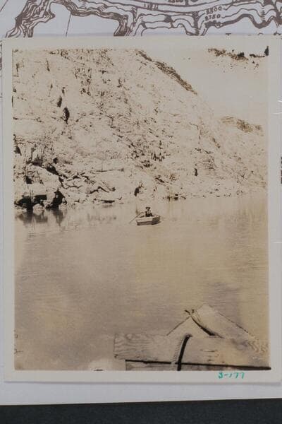"The big rock that Jaeger missed--Tuna Creek Rapids." Bright Angel gauge: 2,650 cfs