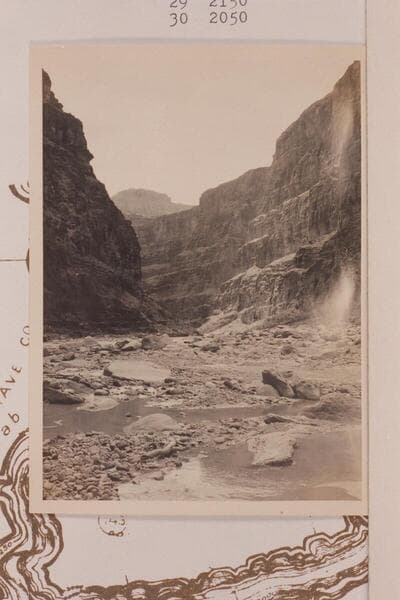 Downriver from beach below mouth of Kanab Creek. Wheeler Expedition