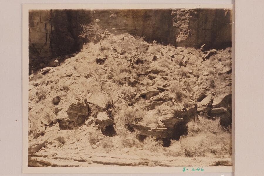 Side of Canyon opposite 3-245 which shows "Noon halt in the shade." At 164 Mile Canyon
