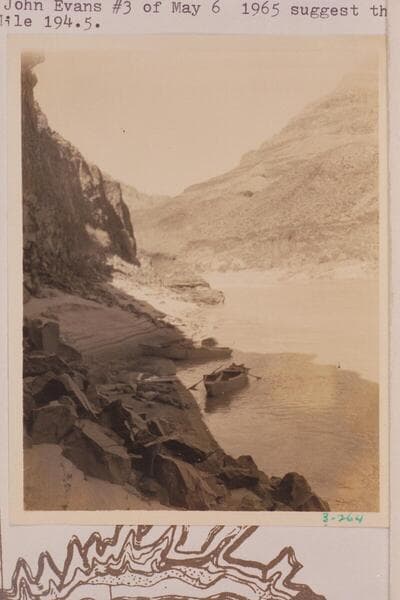 Lunch stop at Mile 195-196. Comparison with John Evans #3 of 1965, May 06, suggest this Eddy view was from about Mile 194.5