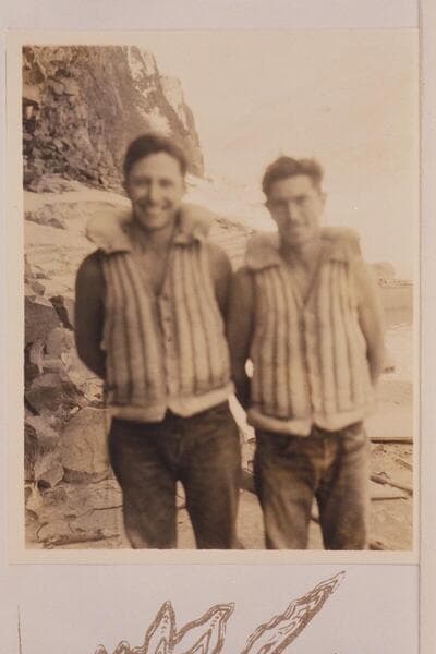 Clyde Eddy and Frank Swain at noon stop at Mile 186 (correction: probably Mile 195)