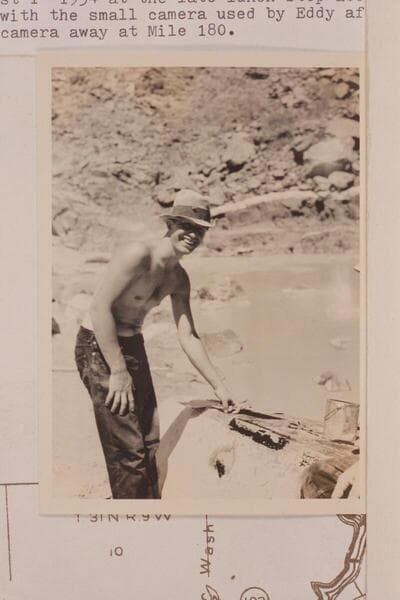 Alt Hatch. Probably 1934, Aug. 01 at the late lunch stop about Mile 195 photographed with the small camera used by Eddy after putting his 4x5 camera away at Mile 180