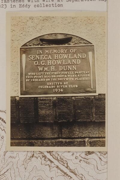 Jim Bailey and F. Strathairn fasten 1934 plaque; Separation Canyon