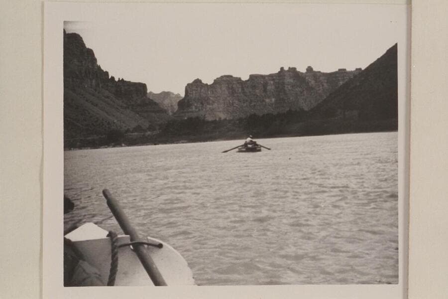 Part of the Nevills party on the Green River near McPherson Ranch. McPherson Ranch is Mile 39.4